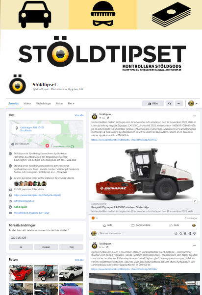 Stöldtipset har en egen hemsida www.stoldtipset.se, finns i sociala medier och