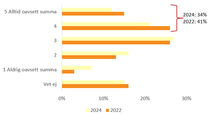 Diagrammet visar svaret på frågan: Känner du något som har begått försäkringsbedrägeri?