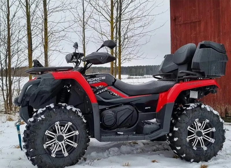 Röd fyrhjuling CFMoto CForce 520L stulen på Gålö i Stockholms södra skärgård