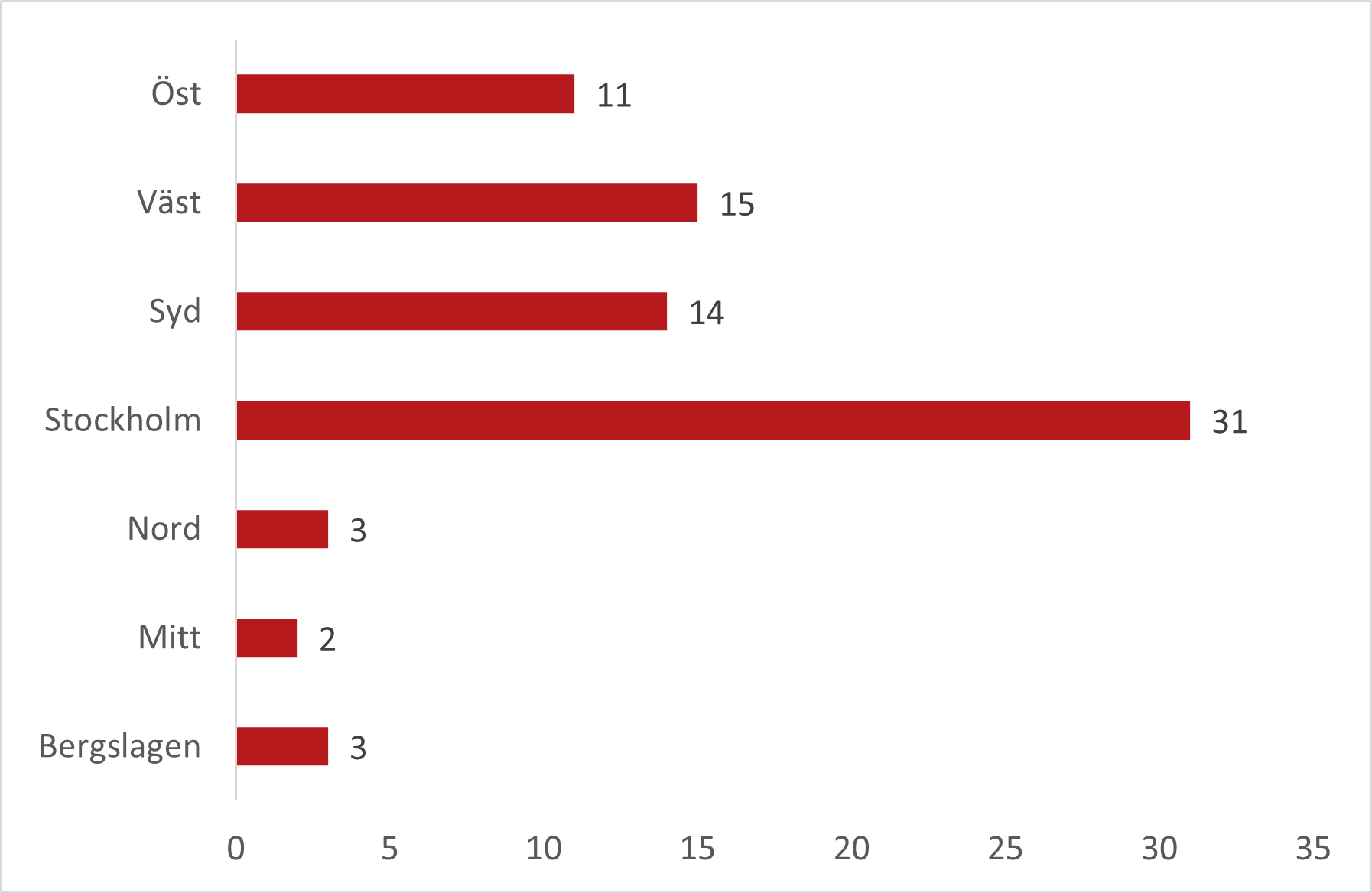 Under 2023 efterlystes flest bilar i polisregion Stockholm (31).