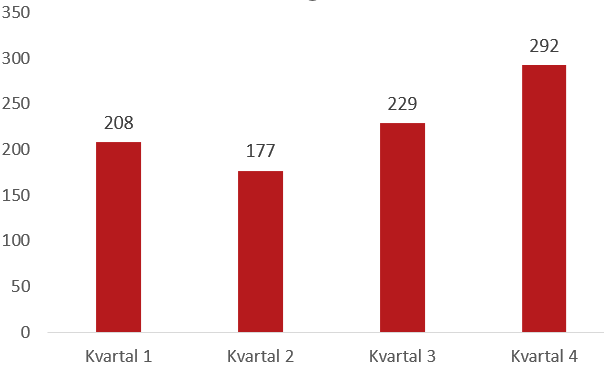 Diagrammet visar antalet transportstölder under 2023 fördelat per kvartal.