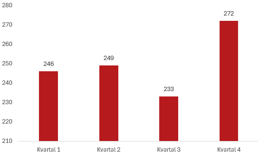 Diagrammet visar antalet transportstölder under 2024 fördelat per kvartal.