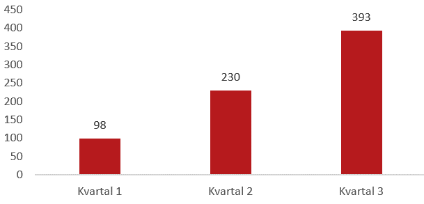 Diagrammet visar antalet stölder av båtmotorer under de tre första kvartalen 2023.