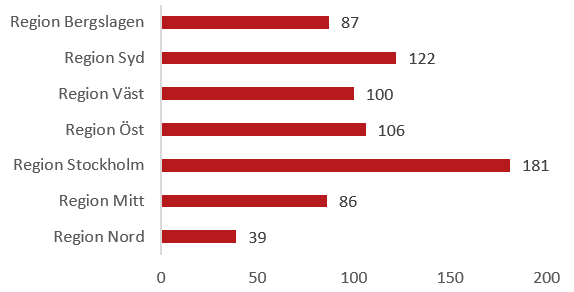 Flest stölder anmäls i polisregion Stockholm (181) och därefter i polisregion Syd (122). I alla polisregioner utan Bergslagen, har stölderna gått ner jämfört med samma period 2022. I polisregion Bergslagen har stölderna under året ökat med 36 procent jämfört med samma period 2022.