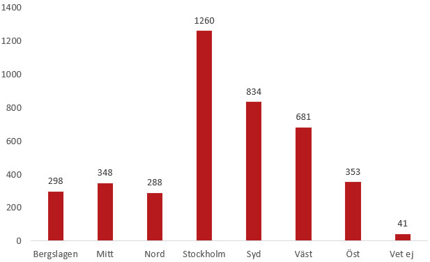 Flest efterlysningar under året har skett i polisregion Stockholm (1260), Syd (834) och Väst (681).
