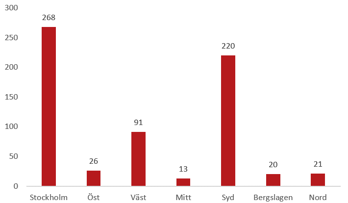Diagrammet visar antalet stölder av bildelar fördelat per polisregion.
