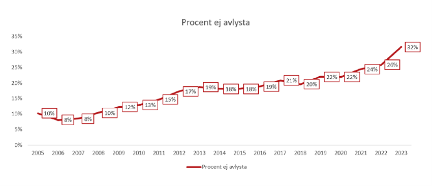 Diagrammet visar utvecklingen av andelen ej avlysta personbilar.