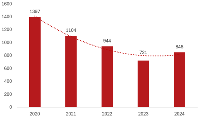 Det ökade antalet stölder under 2024 är ett trendbrott jämfört med de senaste åren, då siffrorna har visat på en konstant nedgång.